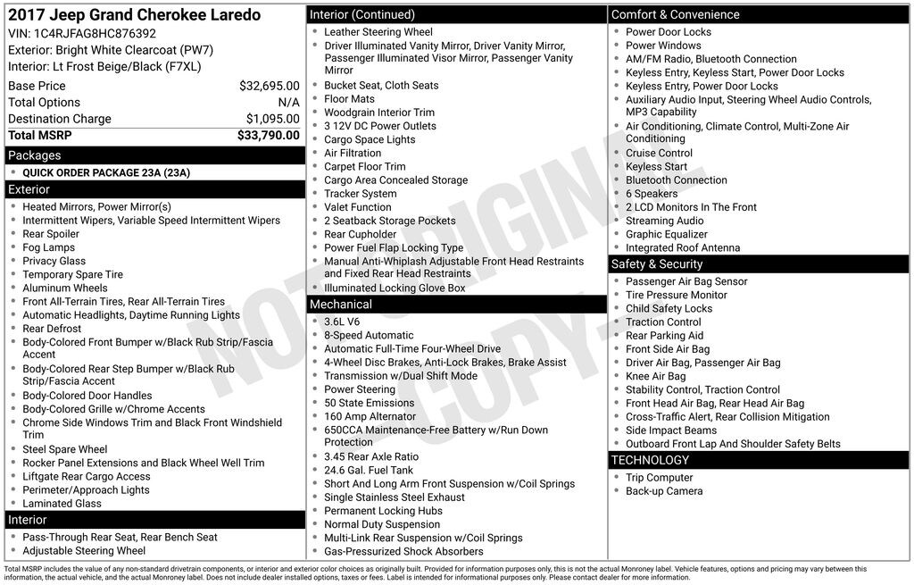 Used 2017 JeepGrand Cherokee Laredo 4x4 SUV V-6 cyl