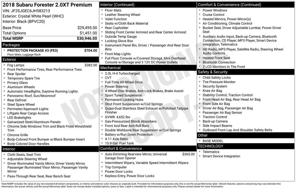 Recent Arrival! Clean CARFAX. 23/27 City/Highway MPG White 2018 Subaru Forester 2.0XT Premium Premium AWD CVT 2.0L 4-Cylinder DOHC 16V Turbocharged Intercooled